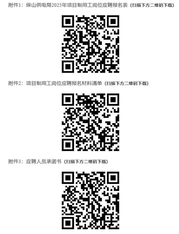 應(yīng)聘人員按照《附件1:保山供電局2025年項(xiàng)目制用工崗位應(yīng)聘報(bào)名表》填寫(xiě)個(gè)人報(bào)名信息,并根據(jù)《附件2:項(xiàng)目制用工崗位應(yīng)聘報(bào)名材料清單》提供項(xiàng)目報(bào)名材料,簽訂《附件3:應(yīng)聘人員承諾書(shū)》。