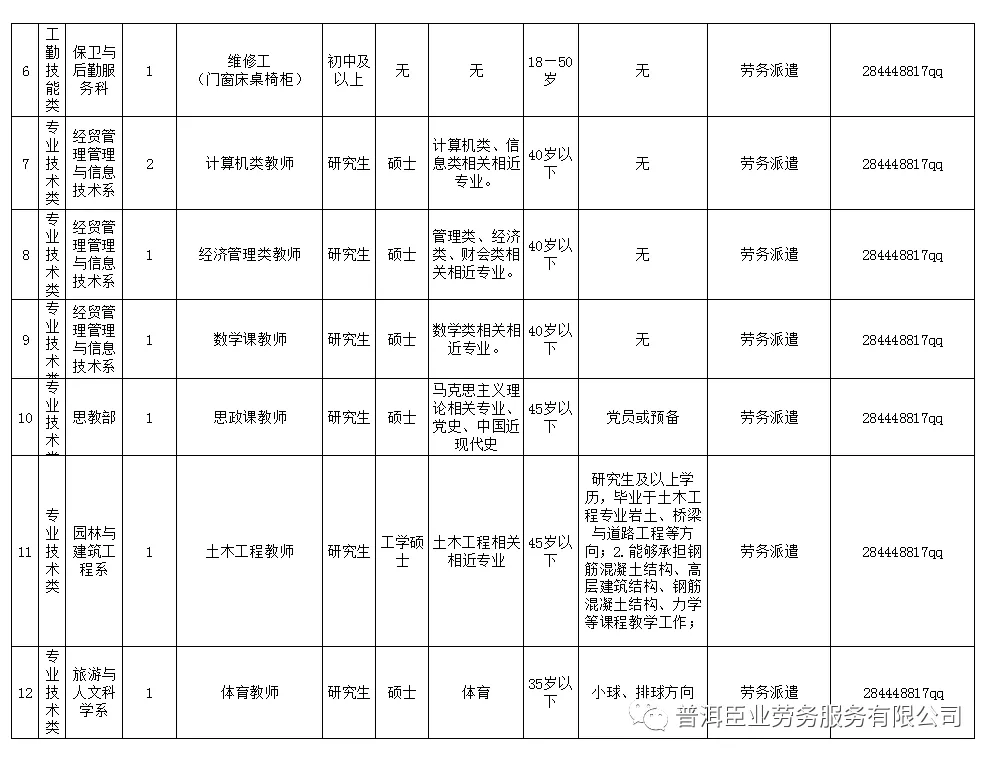 (四)具有中華人民共和國(guó)國(guó)籍,原則上年齡不超過(guò)35周歲(1986年7月22日后出生),有些崗位年齡適當(dāng)放寬,(具體崗位信息詳見附件)。工勤技能類的教務(wù)科(康平基地)及保衛(wèi)與后勤服務(wù)科,免考試,符合要求者進(jìn)入面試,(具體崗位信息詳見附件)。