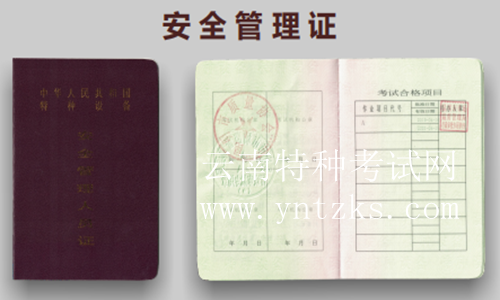 鍋爐、壓力容器、電梯、起重機(jī)械、客運(yùn)索道、場(chǎng)(廠)內(nèi)專用機(jī)動(dòng)車輛的管理人員統(tǒng)稱為特種設(shè)備安全管理人員,代號(hào):A。證書全國(guó)通用,國(guó)網(wǎng)查詢。4年一復(fù)審,由昆明市市場(chǎng)監(jiān)督管理局頒發(fā)。